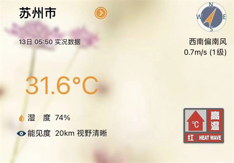 到了傍晚,苏州气象发布了今年首个高温红色预警,这也是时隔5年苏州再次发布高温红色预警(苏州上次发布高温红色预警是2017年7月24日)。