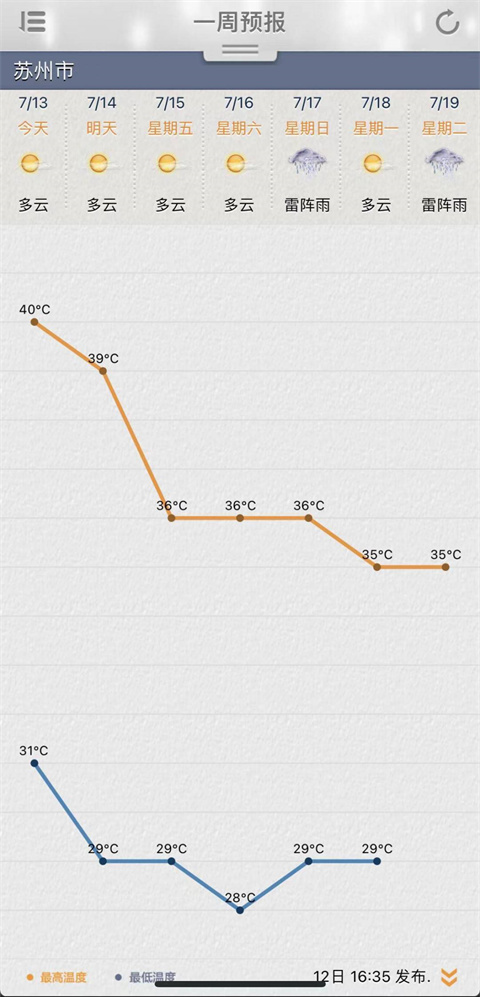 苏州市气象台今天5:20发布高温报告,由于受副热带高压控制,预计今天我市最高气温可达40℃左右。