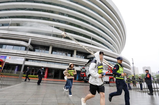 图/志愿者演练