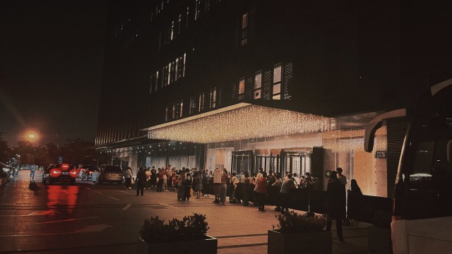图/国羽夺冠当晚 队员们下榻的酒店门口