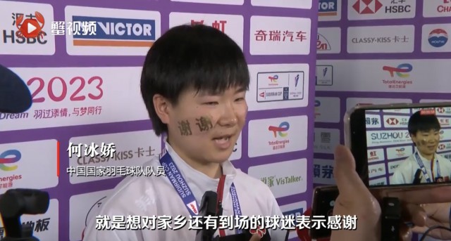 苏州,苏迪曼杯赛事全程被提起最多的关键词之一。赛后采访中,中国国家羽毛球队运动员何冰娇在脸上用胶带贴着“谢谢”、“苏州”。谈起原因,何冰娇笑称,“就是想对家乡和到场的球迷表示感谢。”她说,在家乡夺得冠军,是自己莫大的荣幸。