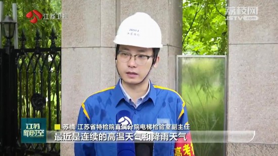 江苏省特检院直属分院电梯检验室副主任苏楠说,最近是连续的高温天气和降雨天气,重点关注的项目是机房有没有进水,应急救援电话是否通畅,包括维保电话是否能第一时间响应。