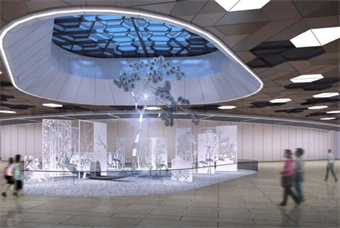 拙政园站,通过对苏州园林的基本元素,如粉墙黛瓦、假山、太湖石、松竹等进行空间重组,与站点步行可达的拙政园、苏州博物馆、平江路等遥相呼应。
