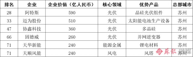总部位于苏州的有6家,依次为:阿特斯、迈为股份、协鑫科技、固德威、天华新能、天顺风能,除协鑫科技外均为A股上市公司。
