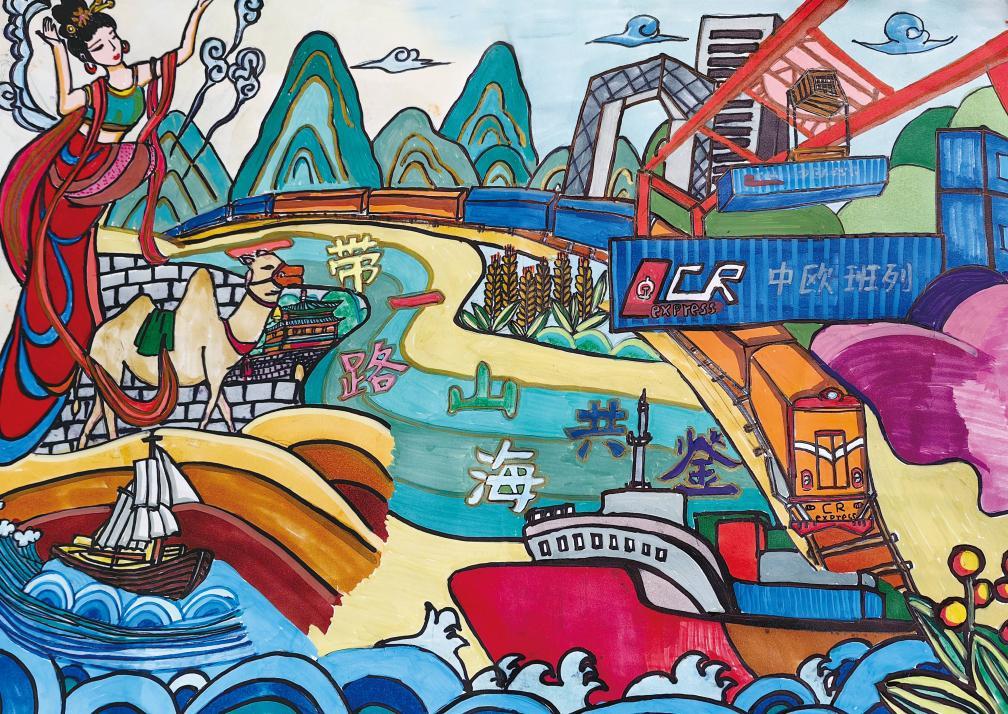 △第三届“天宫画展”中展出的作品《一带一路 山海共鉴》