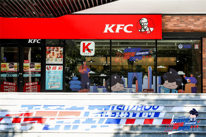 “96110,记住这个电话,‘堡’你平安”、“可乐炸鸡和薯条,不能转账要记牢”,听说苏州有家肯德基餐厅玩起了谐音梗,还很有看头!
