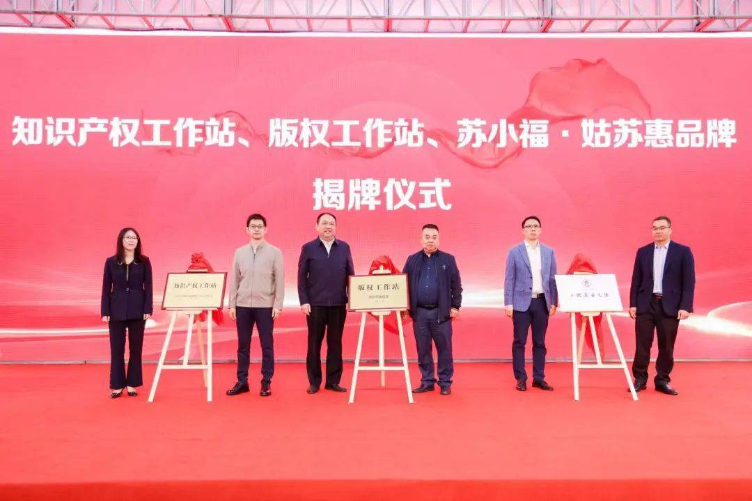 活动现场,还揭牌了知识产权工作站、版权工作站、苏小福 ∙ 姑苏惠(小微企业服务品牌)”。