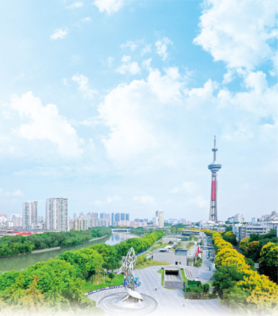 蓝天白云下,外秦淮河边,店铺传出悠扬的音乐,移动花车、特色花箱……人们穿行其间,享受闲暇时光。