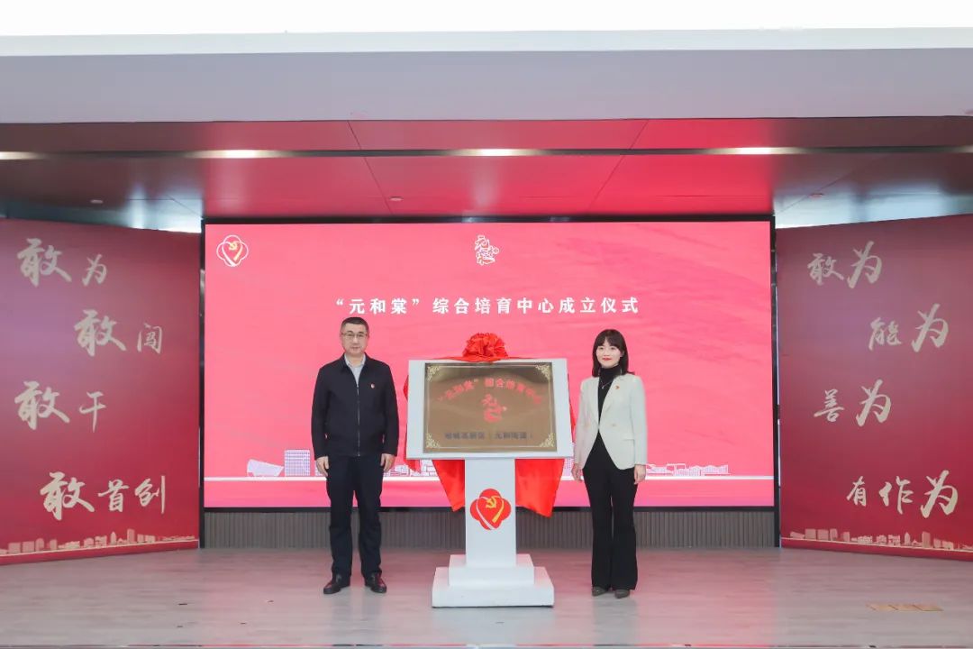 现场,“元和棠”综合培育中心揭牌成立,将成为推动干部队伍建设、实现发展宏图的重要抓手。“元和棠”综合培育中心位于元和塘畔科技文化研发社区C座。中心总体实用面积近千平,包含园区展示中心1个、党建厅1个,不同规格会议室4个,路演厅2个,接待室1个,最多可容纳500人同时参加培训。中心配有学员食堂、休息区域、学习区域,近期拟开设健身区域,可最大限度保障干部教育培训全要素服务需求。