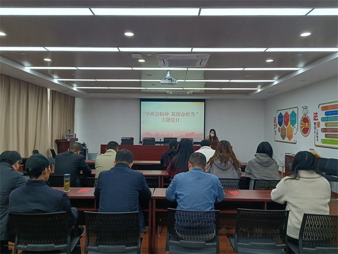 2023年3月16日上午,相城高新区(元和街道)众泾社区、娄北社区联合依云水岸社区在社区会议室开展“学习贯彻全国两会精神”主题党日活动。
