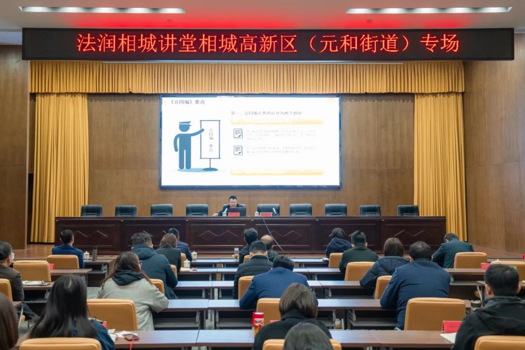 近年来,相城高新区(元和街道)深入学习贯彻党的二十大精神和习近平总书记关于基层治理的重要讲话精神,深化党建引领优势,持续探索加强基层治理体系和治理能力现代化建设新实践。为进一步夯实基层干部政策理论基础,提升社会治理本领,3月25日,2023年第三期相城高新讲坛暨中心组(扩大)学习会——法润相城讲堂相城高新区(元和街道)专场活动举办,通过线上线下相结合的方式,组织社区和机关单位干部代表80余人线下听讲,线上直播间吸引1700余人次观看并参与互动。