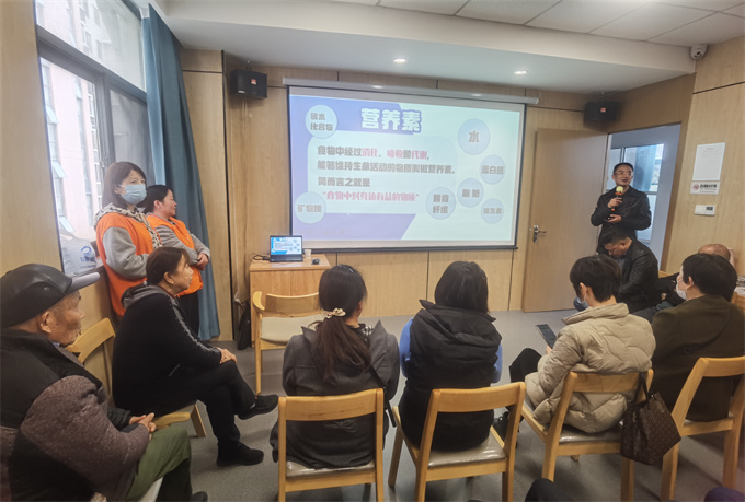 本次讲座,讲师用通俗易懂的语言,幽默风趣的风格向居民们耐心讲解什么是隐性饥饿,现代医学发现,70%的慢性疾病包括糖尿病、心血管疾病等都与人体营养元素摄取的不均衡有关,“隐性饥饿”正成为人们健康的致命杀手。讲师提醒大家在日常生活中须多观察自己身体状况,向现场居民提出了合理膳食、适量运动、戒烟限酒、控制体重、心理平衡等建议,提醒老人要定期进行身体健康检查。