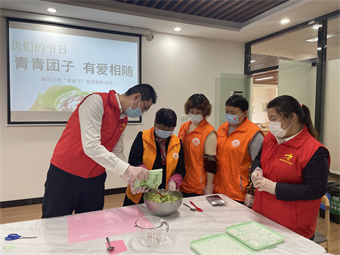 不一会儿,散发着淡淡糯香,油绿如玉的青团新鲜出炉,志愿者给日间照料的高龄老人们一一送上,老人们喜滋滋地品尝着自制的美味团子,口腔里弥漫着春天的味道,感受着日照大家庭的“爱”。(作者:姚黎静、王瑜)