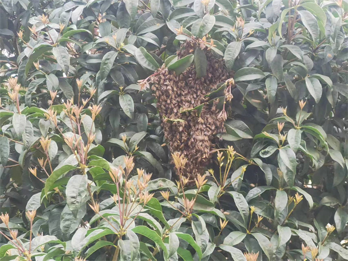 前不久,建元社区网格员胡晓伟在巡查中发现,城立方花园北区的一棵枇杷树上赫然悬挂着一个直径约20公分的马蜂窝,旁边时不时的还有马蜂飞来飞去。马蜂窝悬挂位置较低,存在随时掉落的危险,并且该路段来往居民较多,经常有老人和孩子在附近玩耍,存在很大的安全隐患。