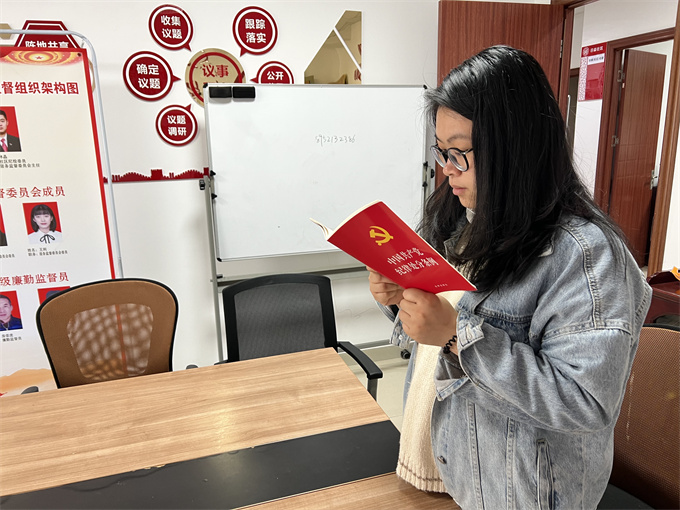 随后,两委班子开展《中国共产党廉洁自律准则》和《中国共产党纪律处分条例》专题学习活动。党总支书记周霞对《中国共产党廉洁自律准则》和《中国共产党纪律处分条例》进行了深入浅出的解读,要求工作人员结合自身工作进行深刻反思,始终严格要求自己,脚踏实地做好本职工作,争当一名合格的社区工作人员。