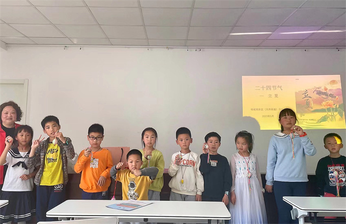 活动开始,志愿者老师为家长和孩子们带来了一场生动的节气知识小课堂。“二十四节气”是上古农耕文明的产物,它是上古先民顺应农时,通过观察天体运行,认知一岁中时令、气候、物候等变化规律所形成的知识体系。而立夏,则是二十四节气中的第7个节气,夏季的第一个节气,交节时间在每年公历5月05-07日。老师还给大家讲述了立夏尝鲜、秤人、斗蛋等立夏习俗。