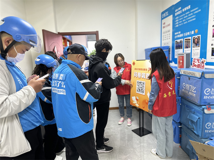 活动中,党员志愿者们向快递小哥们送上了清凉用品,向奋战在岗位一线的快递小哥们表示衷心感谢,致以诚挚的问候和节日的美好祝福,并叮嘱他们日常工作时一定要注意行车安全、保护好自己,同时也表达了党和政府对新业态新就业劳动者的一份牵挂、一份心意。随后,通过围绕“如何更好地服务新业态新就业群体,小哥们日常工作中遇到的问题与疑惑”等问题展开调研,线上线下多渠道征集“微心愿”。快递小哥们敞开心扉,畅所欲言,通过亲切交谈,社区了解了他们的所思、所想、所盼,同时鼓励快递小哥们积极参与社区的文明创建、反诈宣传、普法宣传等志愿服务活动,号召他们与社区工作者们一起“并肩作战”。