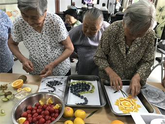 此次活动以老人们的日常生活为切入点,开展水果拼盘活动,引导大家相互合作,相互赞赏,提升动手能力的同时也获得自我认同感,同时激发了老年人的想象力,动手操作能力让辖区的老人们体会到创作和成功的乐趣。