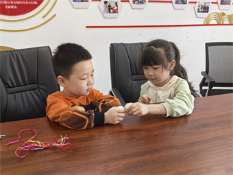“立夏胸挂蛋,孩子不疰夏。”每逢立夏,苏州人都有用网袋给孩子脖子上挂个咸鸭蛋的习俗,用来压邪,鸭是“压”的谐音,咸鸭蛋就是“邪压蛋”。活动现场,手工达人季老师为老人和小朋友们讲解了编织的技巧,并手把手示范,首先拿8根颜色各异的细绳子打结,然后用一根粗绳子穿起来,最后把粗绳子系在矿泉水瓶上,相互穿插打结,一个漂亮的网袋就完成了。大家互相学习,耐心地制作网袋,青年志愿者不时地在旁帮助小朋友们,没多久,一个个五颜六色的网袋便成型了。小朋友们迫不及待地将自己编织好的网袋挂在脖子上,脸上露出了开心的笑容。