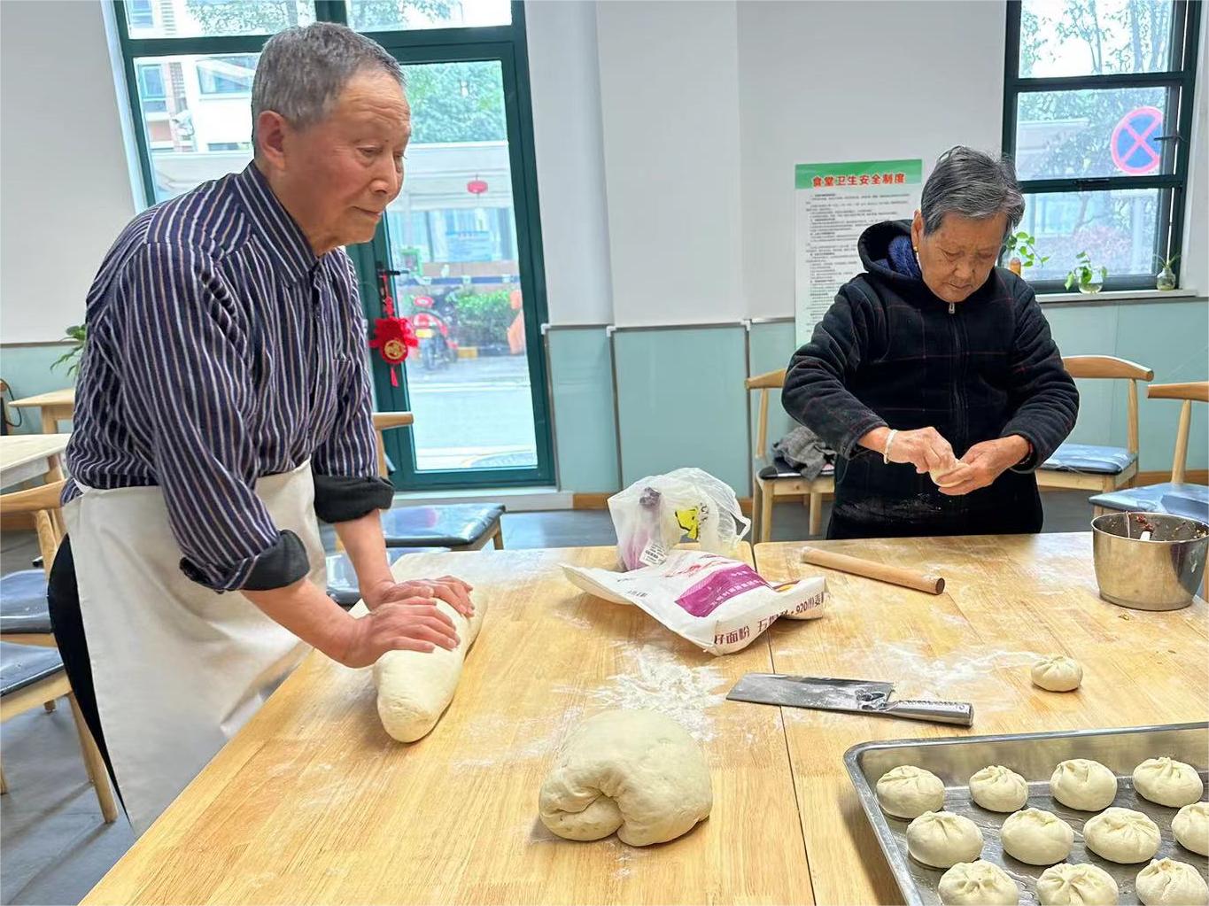 古巷社区除了为日常生活需要帮助照料的老年人提供膳食供应、个人照顾、保健康复外,还会不定时开展一些休闲娱乐活动。当天上午,海棠先锋志愿者提前准备好了制作包子的原材料,通过大家一上午的忙碌,一个个皮薄馅大的肉包映入眼帘。海棠先锋志愿者方阿姨介绍说:“这次活动的食材包括包子皮、馅料都是我们自己亲手准备的,和面、蒸箱的火候温度,我们都把控到位。其中饱含着海棠先锋志愿者满满的诚意和辛勤的付出。”随后,志愿者通过入户走访的方式,第一时间将热腾腾的包子送到了居民手中。独居老人张阿姨脸上洋溢着笑容,开心的说道:“这包得还挺像样的,就像是出自店家之手,谢谢你们哦,一直关心着我。”