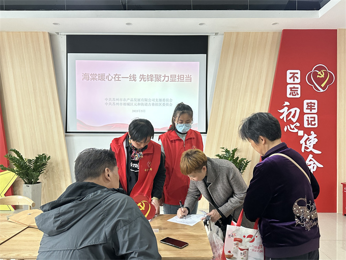 近日,相城高新区(元和街道)古巷社区党委联合苏州市农产品发展有限公司党支部,开展了一场以“海棠暖心在一线 先锋聚力显担当”为主题的活动。通过海棠先锋的力量,为社区居民提供暖心服务。