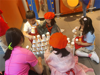 活动过程中,主持人提出了一系列汉堡相关的小问题,让孩子们了解了汉堡的相关知识和制作流程。随后小朋友在家长的辅导下,动手制作自己的小汉堡。小朋友们一步一步完成了自己的汉堡包,还跟爸爸妈妈一起品尝。不少家长直言,自己是第一次吃到孩子亲手做的食物。在纸杯叠叠乐与航天卫星拼装竞速环节中,孩子们从独自作战到相互合作,在不断尝试、探索,游戏经验逐步得到丰富和提高。孩子们不仅了解了中国的航天知识,还创造性地用平铺、围拢、垒高等独特的搭建手法,迅速堆叠起纸塔。