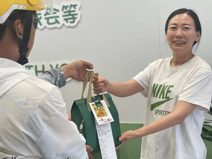 (新业态群体志愿者随送餐向居民赠送文明城市宣传“新”意卡片)