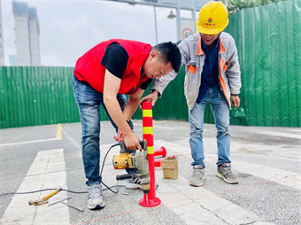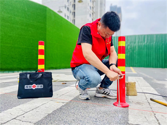他把情况汇报给社区党支部,不久后,他就找到了附近建筑施工单位,借来打桩机,并且带上社区购买的梅花桩路墩,和工人师傅一起把聚茂街与金砖路交叉口、聚茂街与织锦路交叉口的两处“断头路”竖立了最后的一道“防线”,就此杜绝了违规停车的现象。