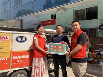 端午粽飘香,情聚暖人心。此次活动中,社区党员、团员青年们携手走进地处苏站路的极兔快递中转站,亲自将香甜可口的粽子送到了快递小哥们的手中,并送去了端午节的慰问,叮嘱他们做好防暑降温工作,将党的关怀和温暖传递到新业态群体。慰问中,各社区党员、团员们积极向快递小哥讲解新业态的服务政策,同时也聆听记录快递小哥对行业的看法,分享各自的生活乐事、交流所思所想、传递幸福能量……活动最后社区党员、团员青年们还提前送了上节日的问候和美好祝愿。