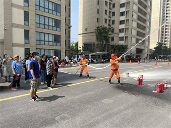 为确保演练有效展开,在活动开始前,社区工作人员、网格员制定了消防演练方案,规划了演练逃生路线,确保能在演练活动中做到指引居民了解正确的逃生路线并进行有效疏散。消防实操演练中,随着消防铃声的响起,居民迅速警觉并且行动起来,安静、快速、有序地弯着腰跟着疏散人员的指引,从安全楼梯快速撤离至空旷的场地。随后,全体居民在物业人员的指导下开展了消防设施实操练习,详细为居民讲解了消防栓、灭火器的使用原理和相关注意事项并教授了他们灭火器使用口诀“提、拔、握、压”。随后,居民依次上前使用灭火器进行了火苗扑灭的操作演练。演练现场,居民们始终保持着学习的热情,也意识到了大火无情,只有时刻牢记消防安全知识,才能在危急时刻做到保护自身安全。