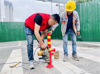 在将情况汇报给社区党支部后,水漾花城社区党支部立即组织工作人员,向附近建筑施工单位借来打桩机,并且带上购买的梅花桩路墩,和工人师傅一起把聚茂街与金砖路交叉口、聚茂街与织锦路交叉口的两处“断头路”竖立了最后的一道“防线”,就此杜绝了违规停车的现象。