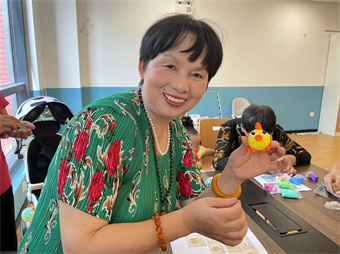 莫阳社区日间照料中心的工作人员提前搜集各式各样、生动有趣的手工粘土教程,打印出教程供老人参考。老人们第一次接触创意粘土都非常开心,也积极主动地学习、请教、相互交流。社区工作人员给老人们分发手工材料并耐心讲解制作的步骤和要领,鼓励大家发挥想象力,完成属于自己的作品。老人们在社区工作人员的带领下,通过揉、捏、搓、贴等轻粘土粘贴步骤,充分发挥自己的想象力和创造力,经过一个上午的努力,一个个精美的创意轻泥手工诞生了。大家看着自己亲手制作的作品,都迫不及待地相互展示,李阿姨看到自己做的黏土作品不禁唱起了数鸭子歌曲,其他的叔叔阿姨们笑容灿烂,他们彼此欣赏和夸赞,犹如孩子般的开心,仿佛一瞬间又回到了青春时代。