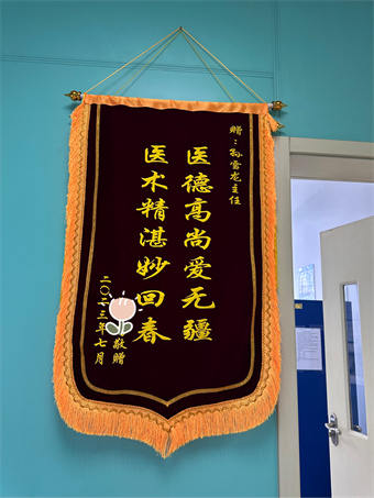 近日,元和街道社区卫生服务中心消化内镜中心主任医师孙雪龙收到患者杨老伯送过来的锦旗,锦旗上“医德高尚爱无疆,医术精湛妙回春”十四个烫金大字饱含着杨老伯对孙雪龙医德高尚、医术精湛的无限赞扬和感激之情。