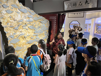 美丽的元和塘畔,大石金生艺术馆内奇石种类多、数量多、款式多,款款都是精品,值得细细品味。孩子们很多都是第一次接触雅石和根雕艺术,他们欣赏到了大师级石雕艺术家精心创作的作品,包括雕塑、石刻和装置艺术,不禁大为赞叹“石痴”李金生的巧思匠心。在欣赏石雕作品的同时,孩子们也了解了石雕的历史和技艺。