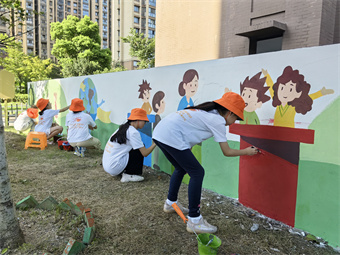 活动现场,学生在老师们的引导下,对众泾家园入口处墙体进行垃圾分类元素的彩绘,大家拿起笔和刷,充分发挥想象力,认真构思,在墙上创作、勾勒、着色,一幅老师在给学生们讲解垃圾分类知识的场景渐渐生动了起来,使原本单一的白色墙面变成了一道靓丽风景线,简单明了的画面在无形中向大家传递着垃圾分类的信号,呼吁着大家要时时刻刻注重环保。