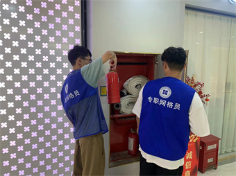 检查过程中,社区网格员对场所内室内消火栓、灭火器、应急照明灯是否完好有效,电梯是否定期进行器材维护保养;安全出口、消防疏散通道是否被占用或违规堆积杂物;物业工作人员是否会正确使用消防器材;场所内是否存在私拉、乱接电线等情况。