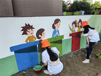 随后,在老师们的引导下,学生们拿起笔和刷,充分发挥想象力,开始了垃圾分类彩绘的创作。不一会儿,原本白色、单一的墙壁在学生们的勾勒、着色下渐渐生动了起来,渐渐变成了一道靓丽的风景线,给垃圾分类宣传氛围增添了几分妙趣,简单明了的画面在无形中向大家传递着垃圾分类的信号,呼吁着大家要时时刻刻注重环保。