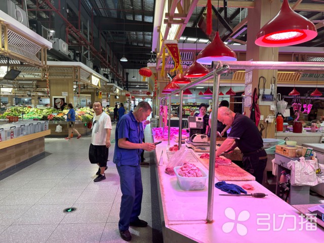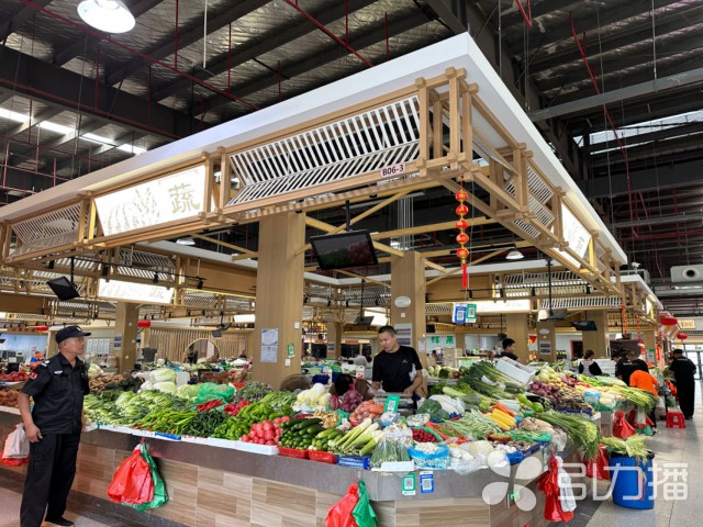 穿过门厅,市集右边是宽敞明亮的便民服务中心,内设食品安全检测室并配有公平秤,守护市民的“菜篮子”;左边专辟休闲区,内有小食店、桌椅,来往顾客可以在这里吃上一顿热腾腾的早饭,与左右邻里拉拉家常;继续往里走,蔬菜区瓜果蔬菜鲜亮,地面环境干净整洁,木质吊楣天然清新,肉摊、豆制品摊、水产摊各个摊位上摆满琳琅满目的鲜货,市场四周是封闭式熟食店铺以及粮油调味品专区。便民的基础设施、琳琅满目的货品赢得了不少市民群众和商贩的肯定。