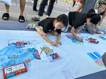 300组家庭齐聚一堂,百米长的画卷绕圈展开,五彩颜色在画布上跳跃,荧幕上的动画人物与小朋友的稚嫩童音融为一体......活力岛广场欢声笑语,童趣满满,好不热闹!