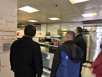 活动中,社区安全员和网格员首先对辖区食品经营户《食品经营许可证》的持证情况进行检查,对还没有办证的经营户详细告知办证流程、宣传办证的新政策等。其次,社区安全员重点巡查了餐饮门面的环境卫生情况,对脏乱差的门面进行劝导,督促他们做好门面内外及厨房的卫生,确保居民用餐环境干净卫生。