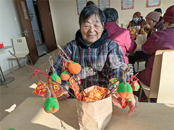 “柿子的柿与‘事’同音,常用来比喻好事成双,事事如意,柿子树寓意非常好,今天是我第一次动手制作‘柿子树’,能和大家一起参加这个活动觉得特别幸福。”参与活动的史爷爷说。