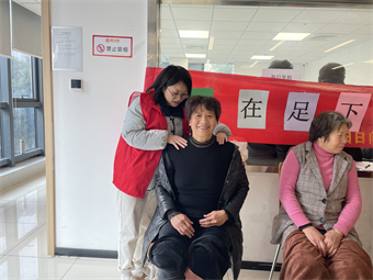 活动开始前,志愿者便早早来到活动现场做起了准备。首先将泡脚桶套上一次性浴袋,准备好擦脚布等物品,将分类好的药材包依次放入沸水盆中,等老人入座后细心为老人们脱鞋脱袜。在老人们泡脚时,志愿者一边不停地帮老人按摩一边与老人拉家常谈心,促进和老人们之间的交流,增加情感陪伴。在了解老人近期的身体健康状态的同时向老人讲解中药泡脚的好处以及冬日养生的方法。暖心的话语、贴心的关怀说到了老人心坎里,欢乐的气氛使得整个活动室都暖了起来。直至活动结束,屋内依旧热情不减,临走前,志愿者也获得了来自老人的真切感谢,舒适、贴心的服务让老人们纷纷竖起了大拇指。