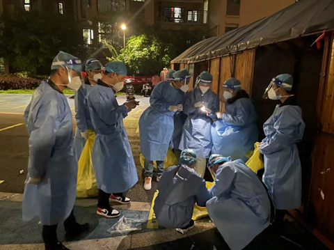 尽管被分成7个点位,但要在封控管控区内每天完成一次超1.3万人的核酸采样绝非易事。为进一步减少人员聚集,加快采样速度,行动支部党员、社会志愿者结合每日上门走访,分时段通知居民有序下楼采样。对少数不配合的居民由民警及心理疏导志愿者上门做好解释工作。行动支部还在各采样点开设绿色通道,优先为上网课的学生和行动不便的居民采样。