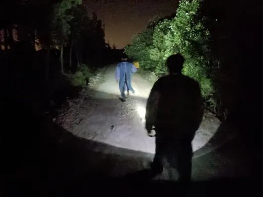 4月27日晚上10点,陈国荣和他的队友们步履不停。他们拿着手电筒,穿着防护服,顺着高速公路沿线来回巡逻。夜里,小小手电筒的耀眼白光,成了太浦河村民的“定心丸”。
