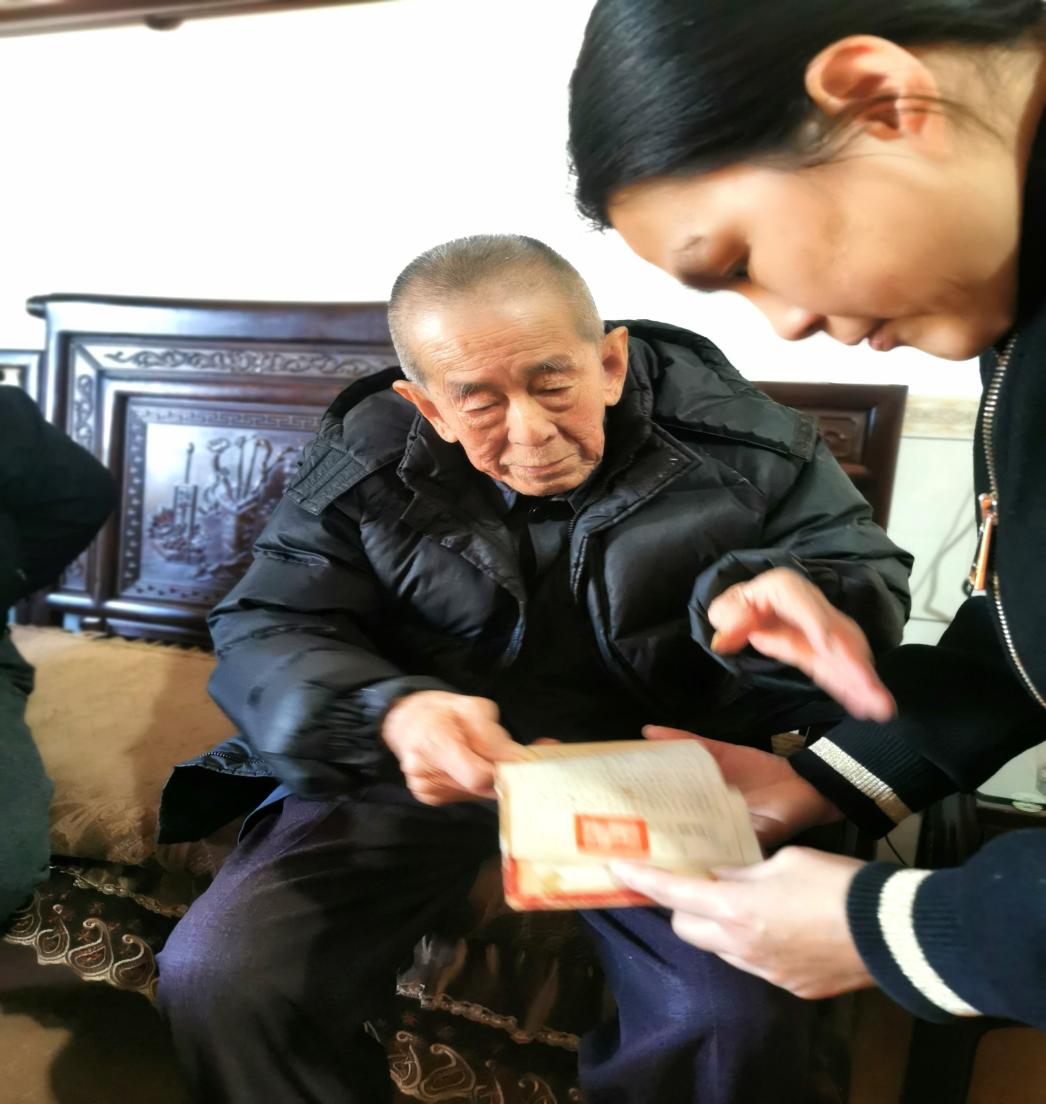 3月10日上午,漳州台商投资区角美镇福井村,95岁的老兵刘和水对前来看望的镇村干部说,当兵才2年,被优待一辈子,现在每月打进卡里有1000多元,生活无忧,最近党和政府又出台新优抚政策,党和政府,好!
