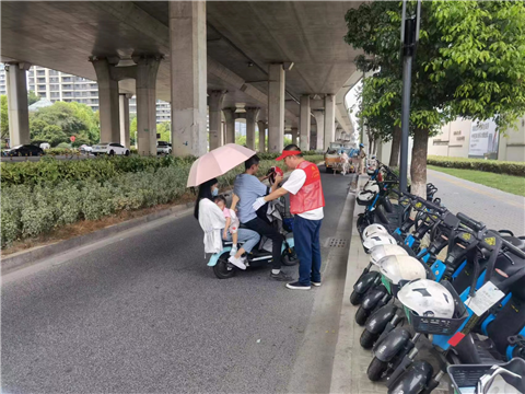 自8月17日以来,党群口第一党支部组织支部党员、入党积极分子等30余人顶着烈日,冒着酷暑在镇区部分路段、交通路口开展巡查及交通执勤志愿服务。志愿者们身穿红色马甲、头戴志愿帽,或是手持夹子、垃圾袋等清洁工具,对道路两侧绿化带内的废纸、塑料瓶、烟头等垃圾进行清理,将随意停放的电动车、三轮车等非机动车移到指定位置并摆放整齐,引导群众有序停放……或是手持志愿小旗,劝导路口未佩戴安全头盔的非机动车骑乘者佩戴好头盔。