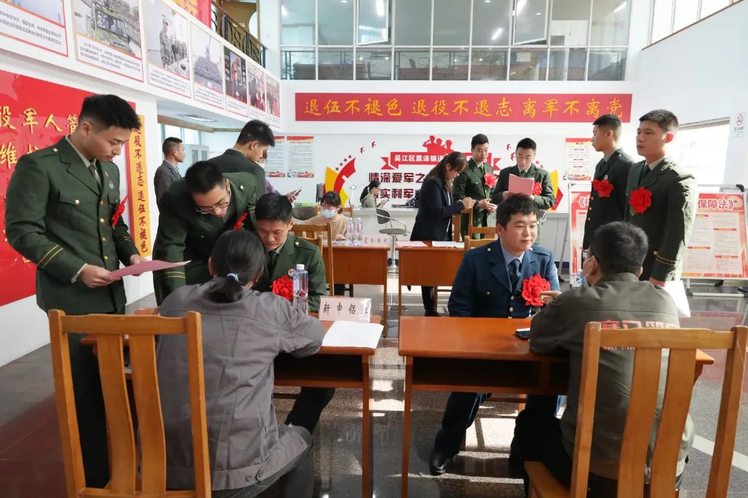 日前,吴江区震泽镇举行2022年退役军人返乡欢迎仪式暨专场招聘会,为退役士兵和本地优秀企业提供相互交流的平台,助力退役军人就业,进一步在全镇范围内营造拥军崇军的良好氛围。9名退役军人以及镇领导顾全、沈斌参加活动。