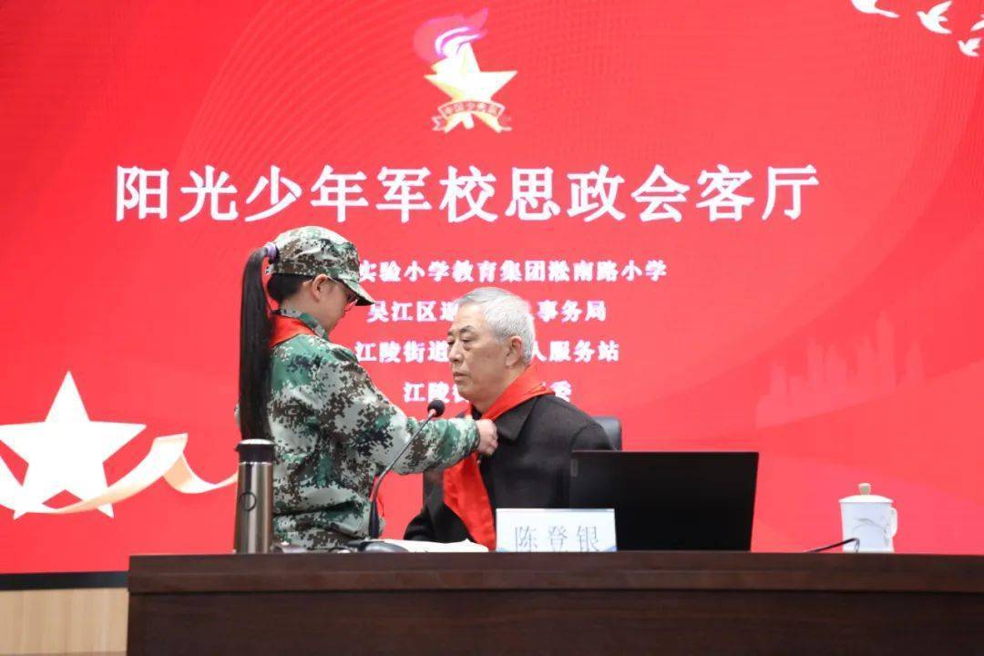 为进一步加强爱国主义教育,培养勇担民族复兴重任的时代新人,11月16日,吴江区退役军人事务局、江陵街道退役军人服务站及江陵实验小学教育集团淞南路小学联合发起“阳光少年军校思政会客厅”,特邀原平凉军分区副司令员兼参谋长陈登银为阳光少年军校的小战士们开设专题讲座。