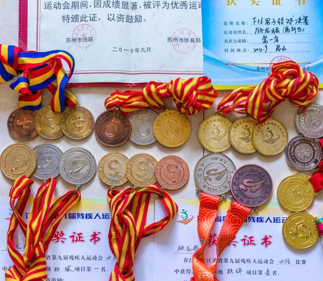 双腿截肢,给顾龙根的休养生活带来极大的痛苦和不便,但他始终保持积极向上的态度和乐观坚毅的精神,多次代表苏州参加江苏省残疾人运动会,获得铁饼、铅球、标枪多枚奖牌,展现了军人不屈的斗志和精神。