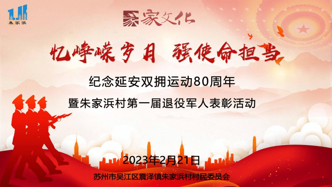 2月21日下午,震泽镇朱家浜村举行“忆峥嵘岁月 强使命担当”纪念延安双拥运动80周年暨朱家浜村第一届退役军人表彰活动,表彰近年来朱家浜村退役军人中涌现出的先进典型,进一步激发广大退役军人的自豪感、荣誉感、责任感,激励他们建功新时代,砥砺新征程。镇党委委员劳晓飞参加活动。